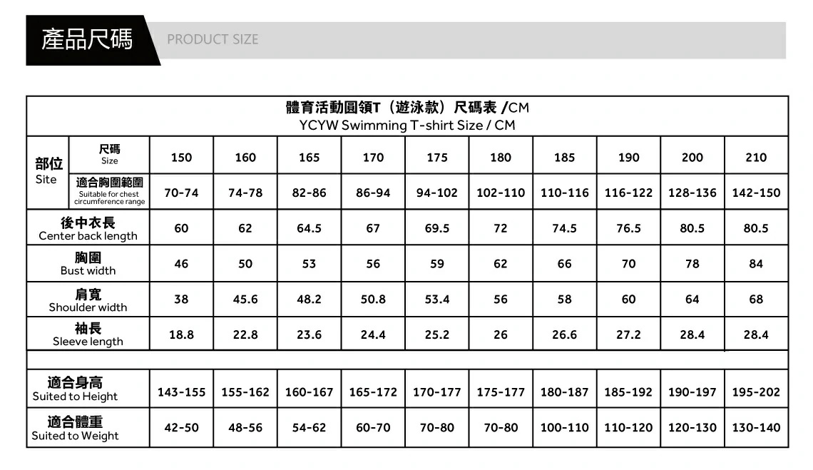 | 尺码 | 130 or 140 or 150 or 160 or 165 or 170 or 175 or 180 or 185 or 190 or 200 or 210 |